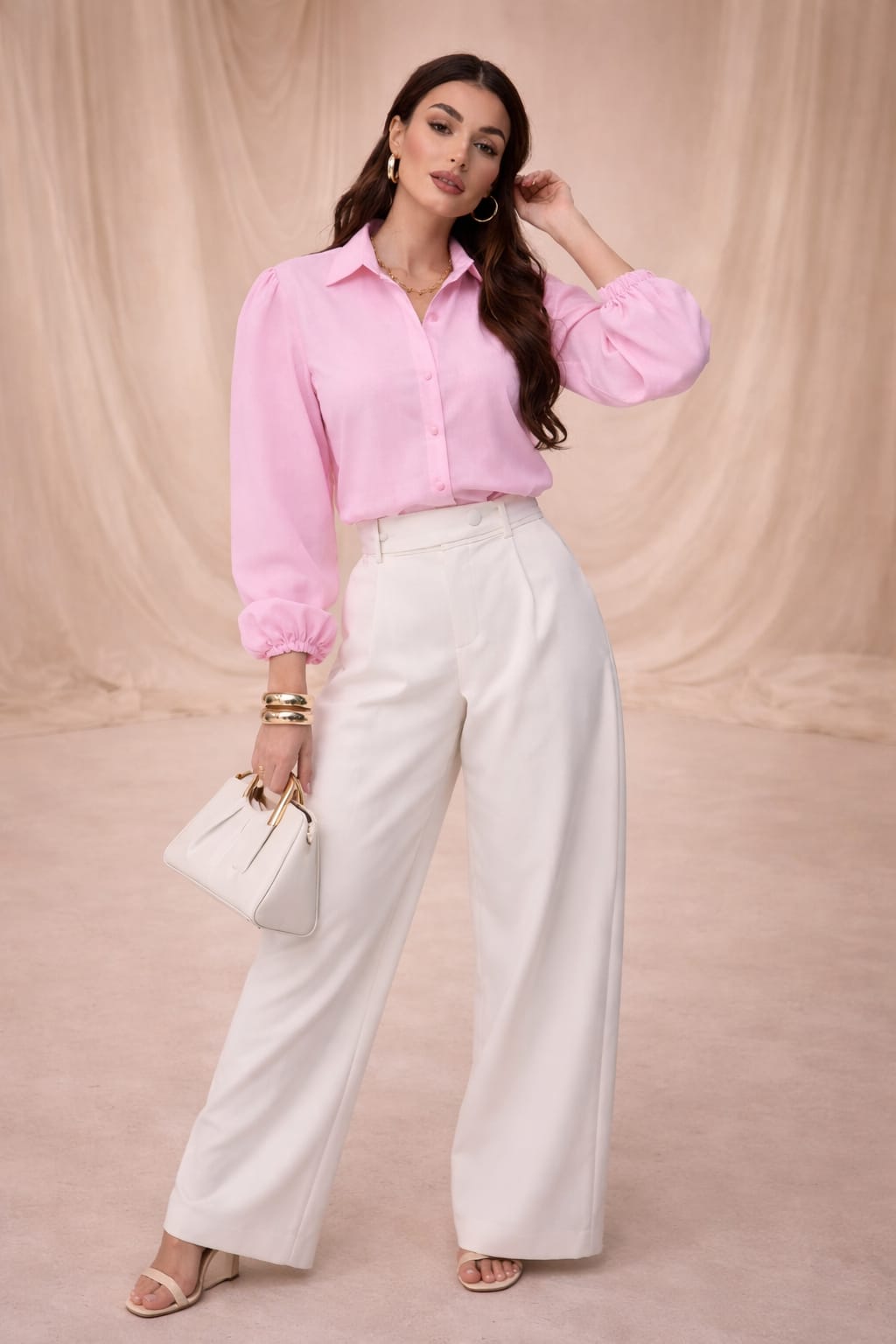 Dizajnová blúzka s viazaním a balónovými rukávmi